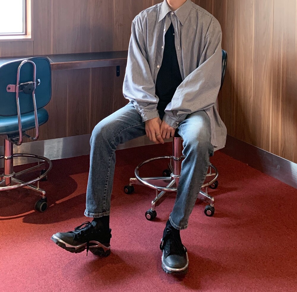 벌룬 스트라이프 셔츠