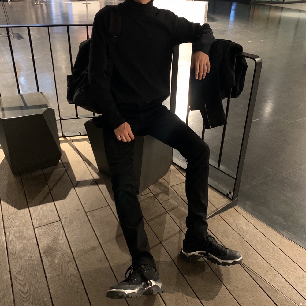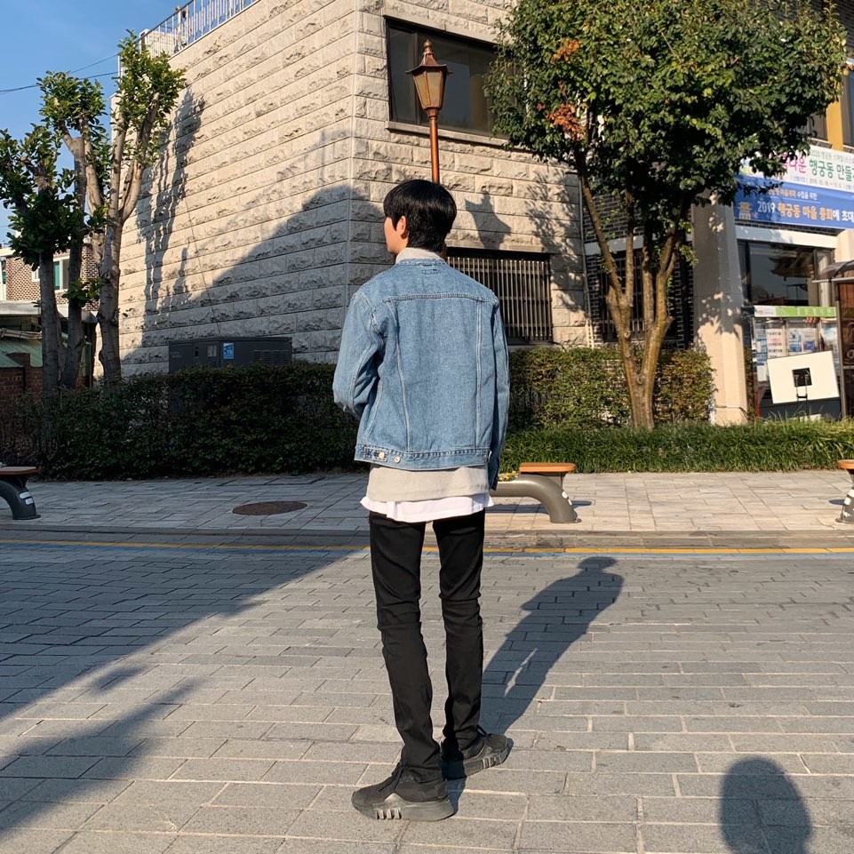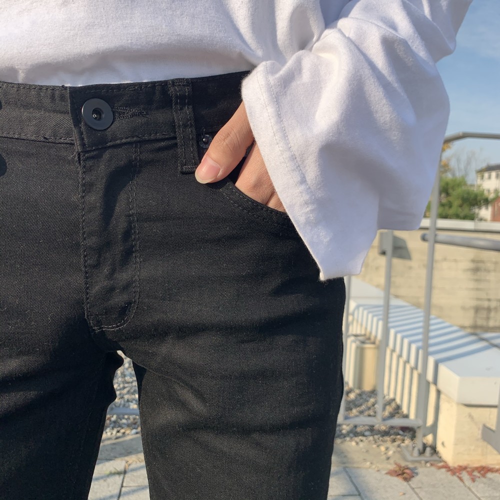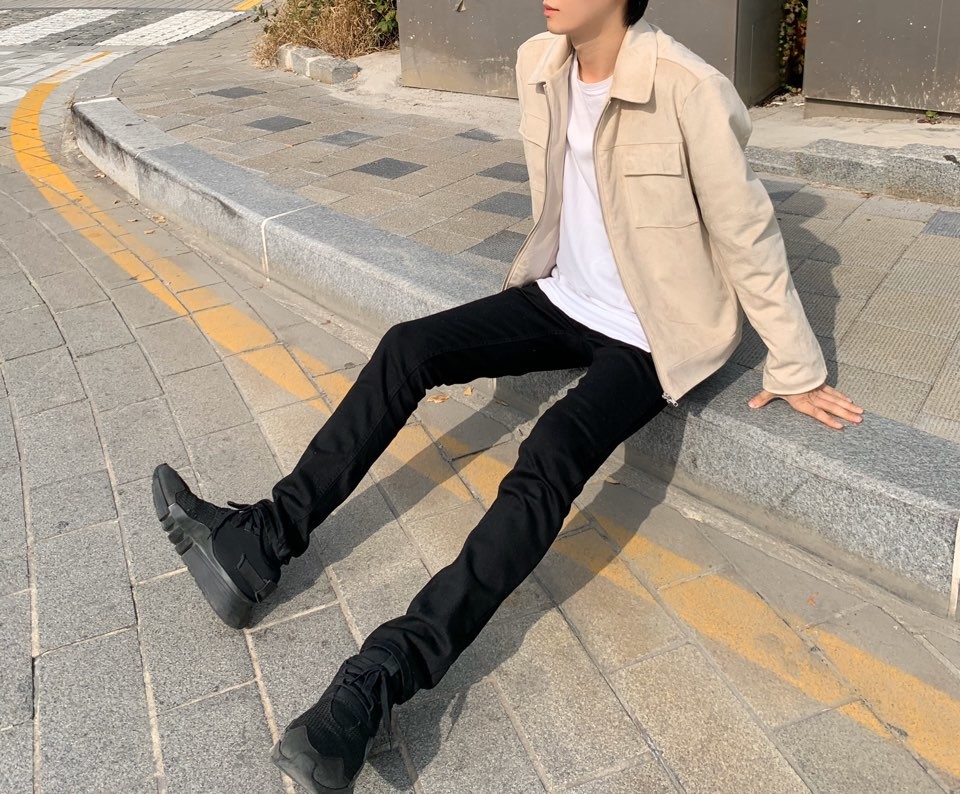 기장도 짧지 않아서 끝부분 쭈글쭈글하게 입기 좋은 블랙진이죠 !