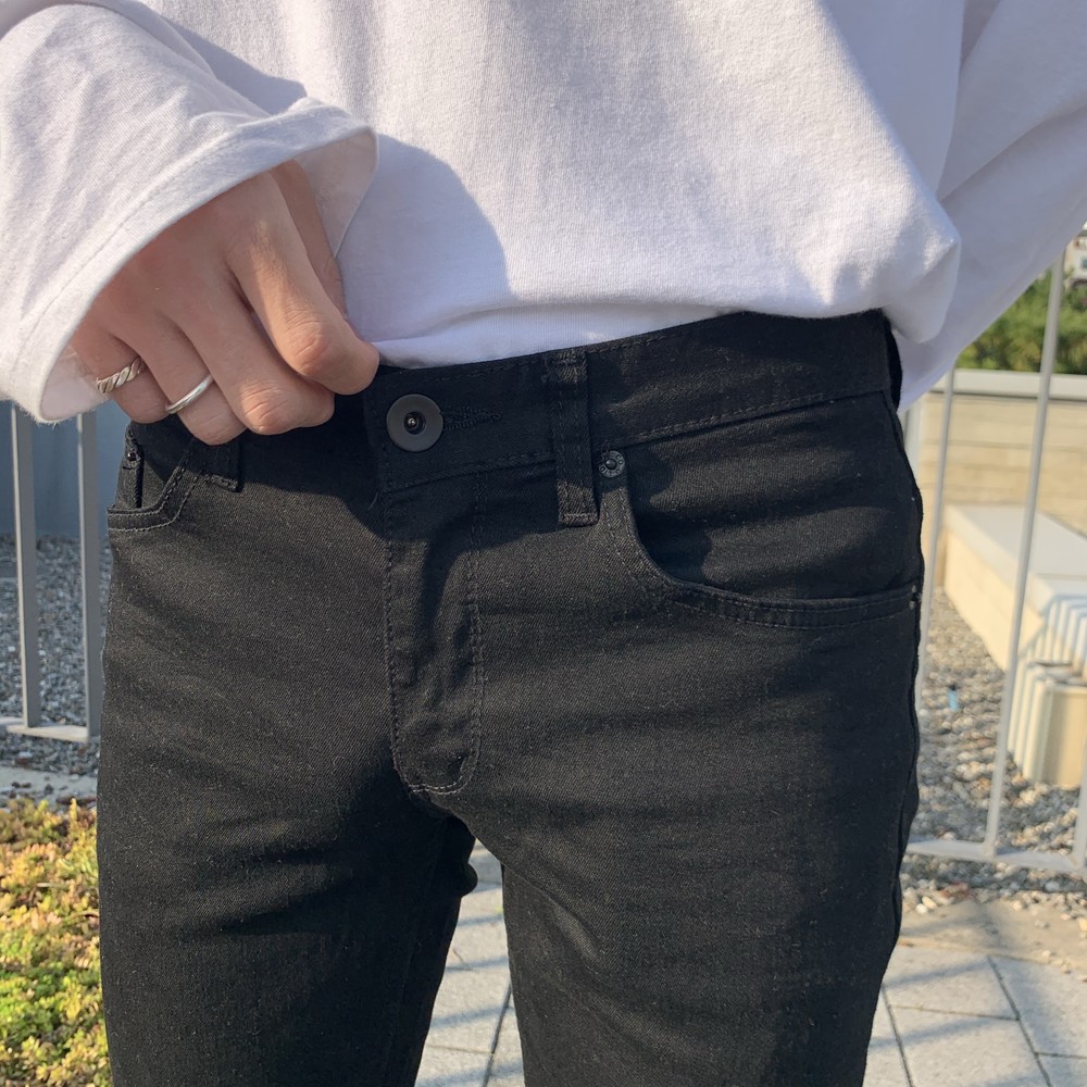 제가 제일 자주 입고 제일 좋아하는 블랙진입니다 일자로 잘빠진 팬츠 !