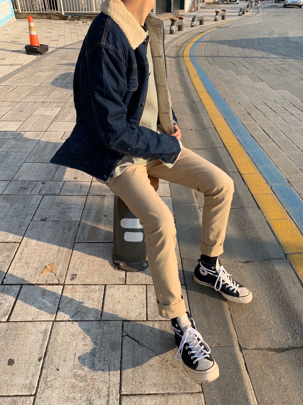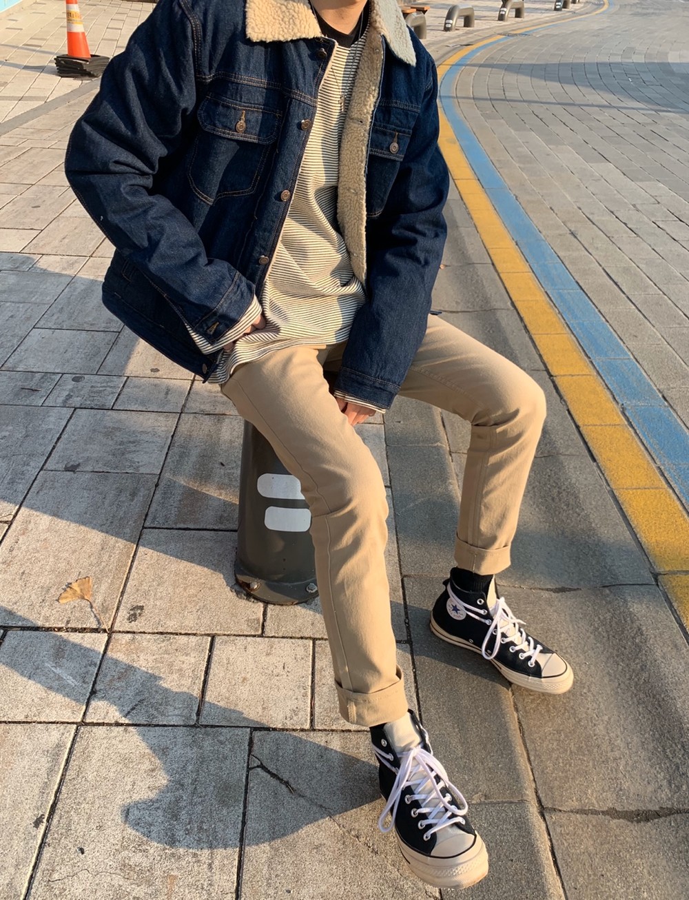 카라와 안감이 양털로 덮힌 청자켓입니다 !